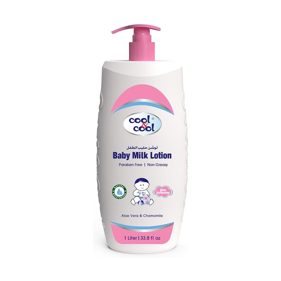 لوشن حليب الأطفال كول آند كول - 1 لتر - مُنعم للبشرة، غير دهني، خالٍ من البارابين، غني بفيتامين هـ، خلاصة الصبار والبابونج بتركيبة لطيفة للغاية