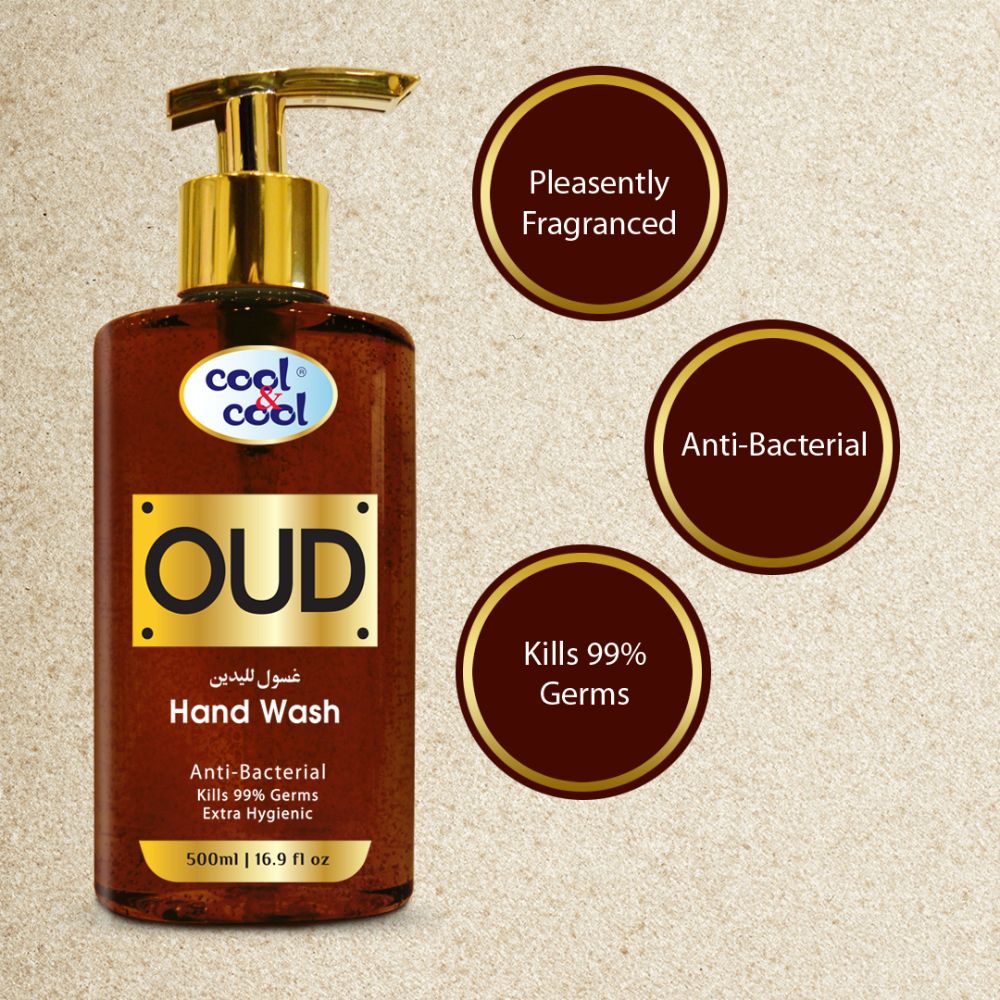 غسول اليدين كول آند كول أرابيك سيريز بالعود - 500 مل - مضاد للبكتيريا، خالٍ من الكحول، مرطب بفيتامين هـ، تركيبة تقضي على 99% من الجراثيم