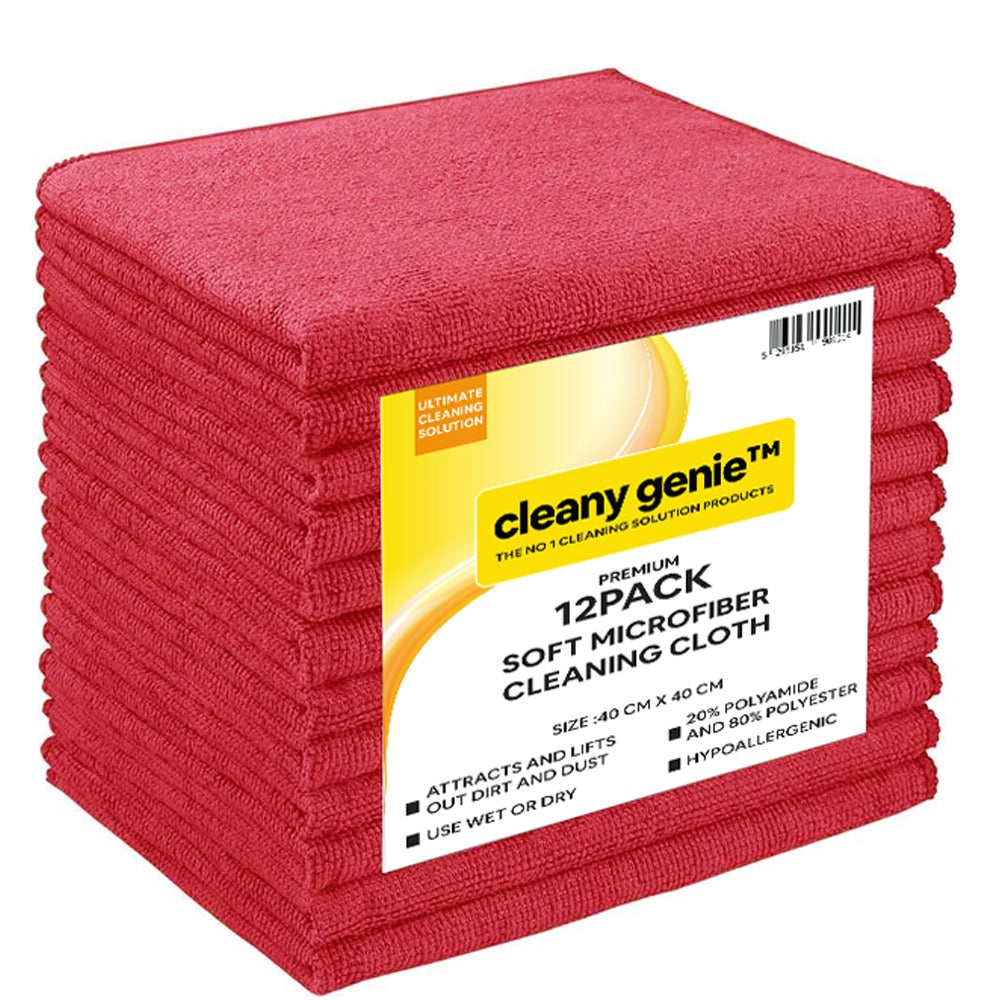 مناديل كليني جيني المصنوعة من الألياف الدقيقة، لون أحمر، عبوة من 12 قطعة