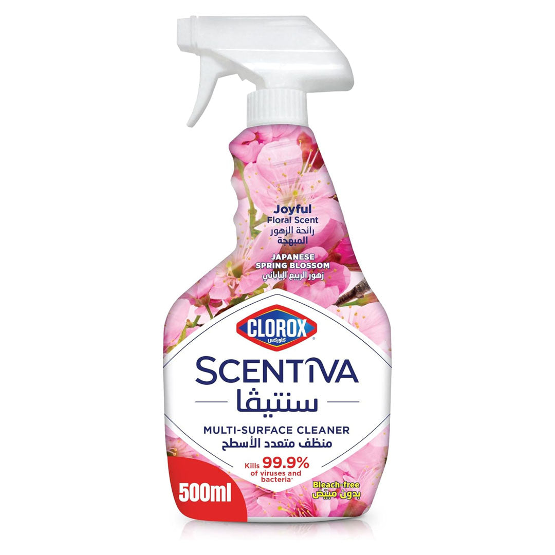 منظف كلوركس سينتيفا متعدد الأسطح، 500 مل، بزهرة الربيع اليابانية، بخاخ مطهر خالٍ من المبيضات