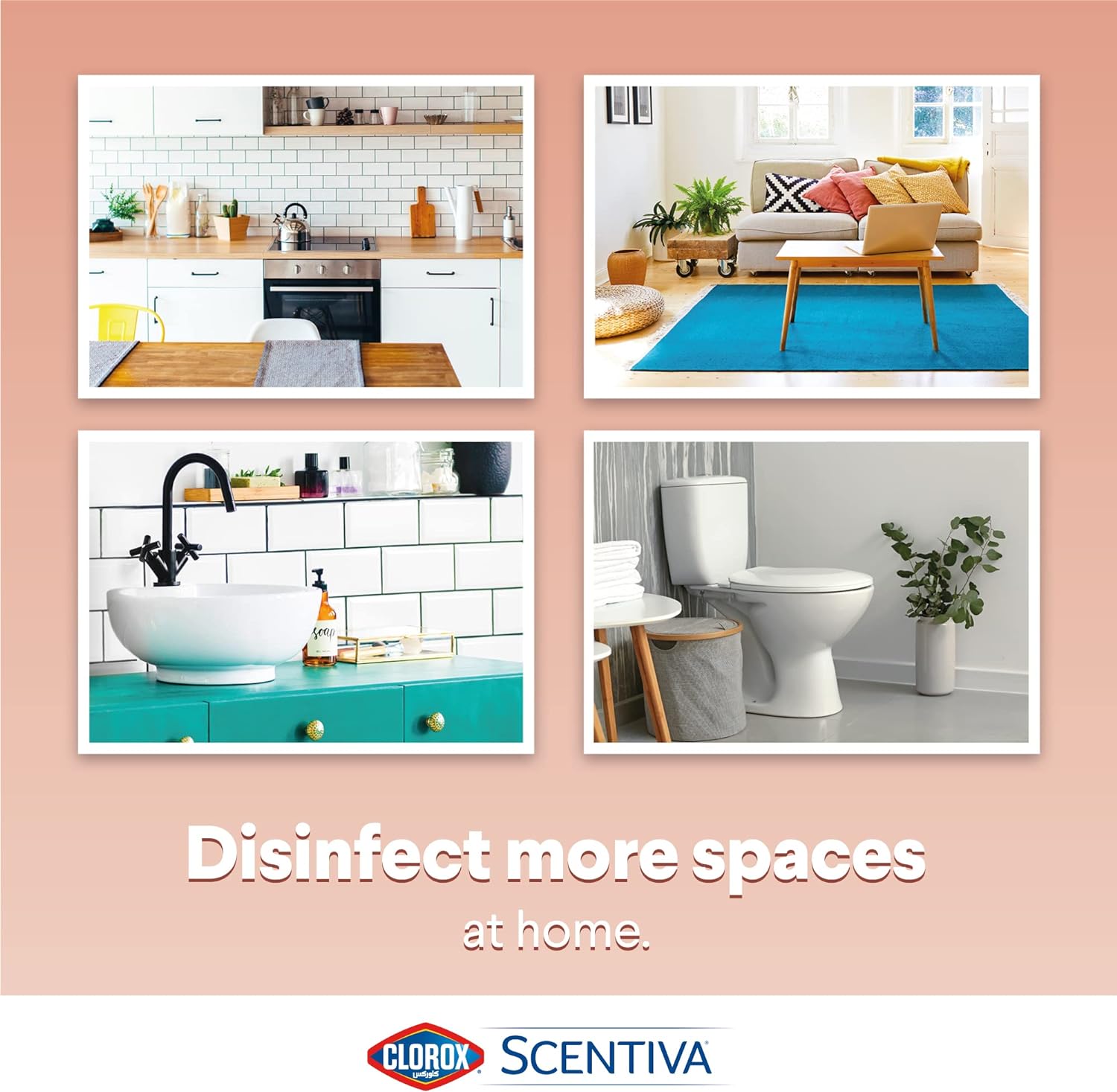 - روائح آسرة: ارفع تجربة التنظيف الخاصة بك مع تجربة سينتيفا الحسية للعطور غير العادية. لم تعد بحاجة إلى المقايضة بين قوة التنظيف التي يتمتع بها كلوروكس والروائح الاستثنائية التي تغير حمامك بالكامل.
