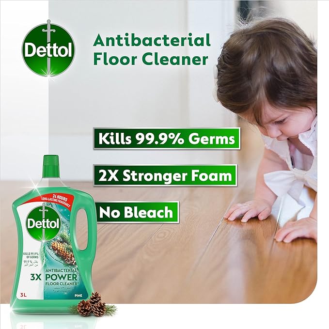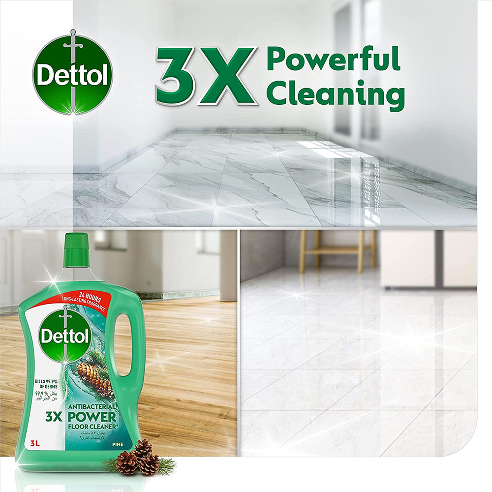 ديتول منظف الأرضيات القوي المضاد للبكتيريا برائحة الصنوبر بقوة تنظيف 3 مرات (يقتل 99.9% من الجراثيم)، 3 لتر