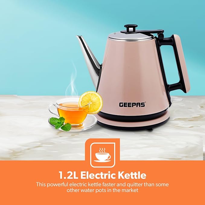 - غلاية سريعة الغليان مع تحكم في درجة الحرارة - تغلي هذه الغلاية القوية بقدرة 1360 واط الماء في غضون 2-5 دقائق، أي 5 دقائق لغلي إبريق كامل (1.2 لتر). تغلي الماء في وقت قصير جدًا لأنها تتوقف عن التسخين بمجرد الوصول إلى درجة الغليان، مما يوفر الطاقة.