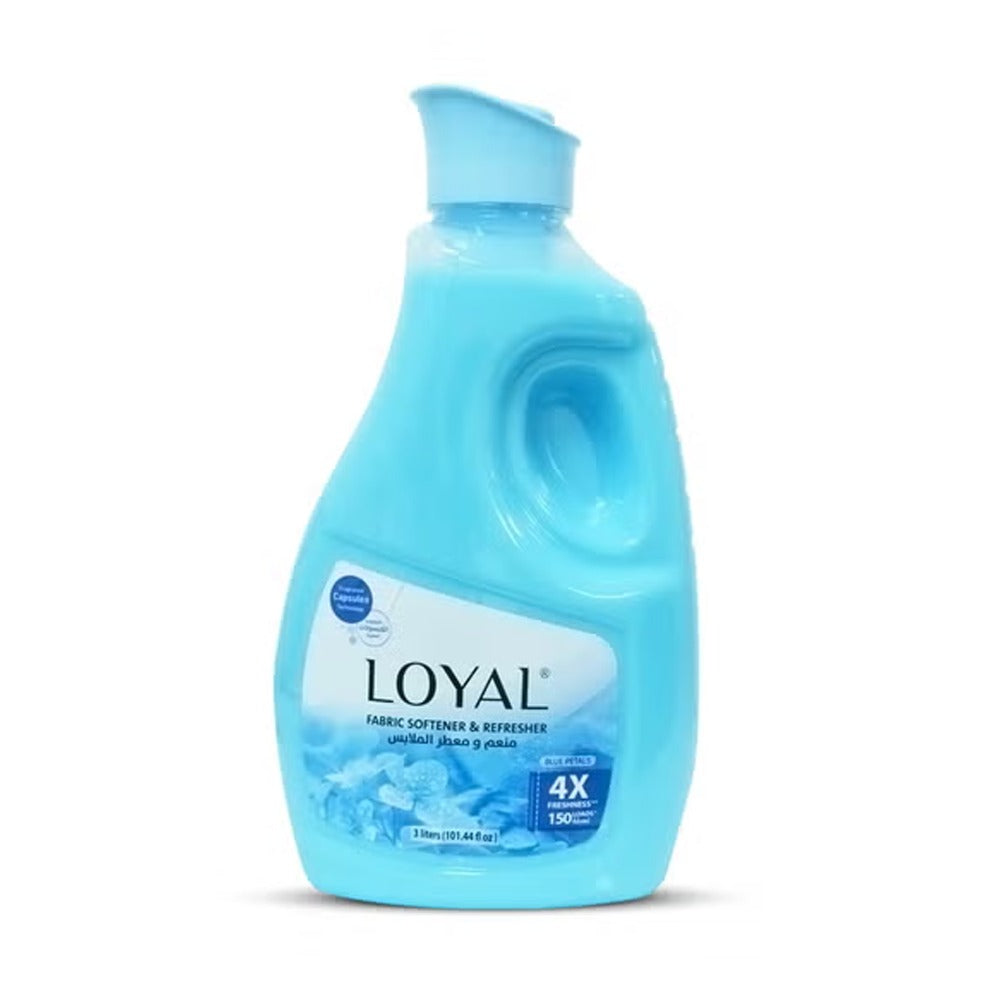 منعم ومعطر الأقمشة لويال بكبسولات عطر بتلات الزهور الزرقاء، انتعاش يدوم 4 أضعاف، يكفي حتى 150 غسلة | 3000 مل | 101.44 أونصة سائلة