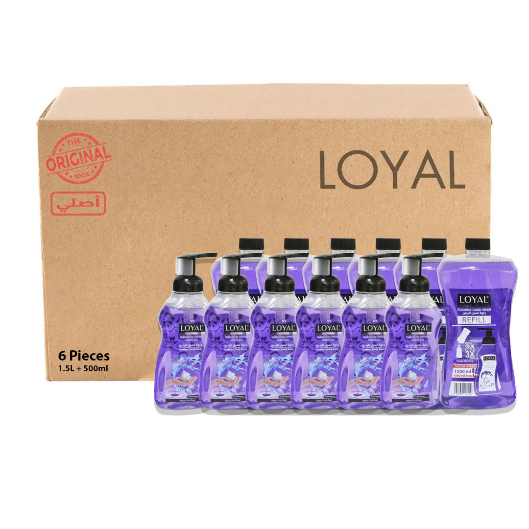 عبوة إعادة تعبئة غسول اليدين الرغوي من لويال 1500 مل + 500 مل، لون بنفسجي غامض - عبوة من 6 قطع