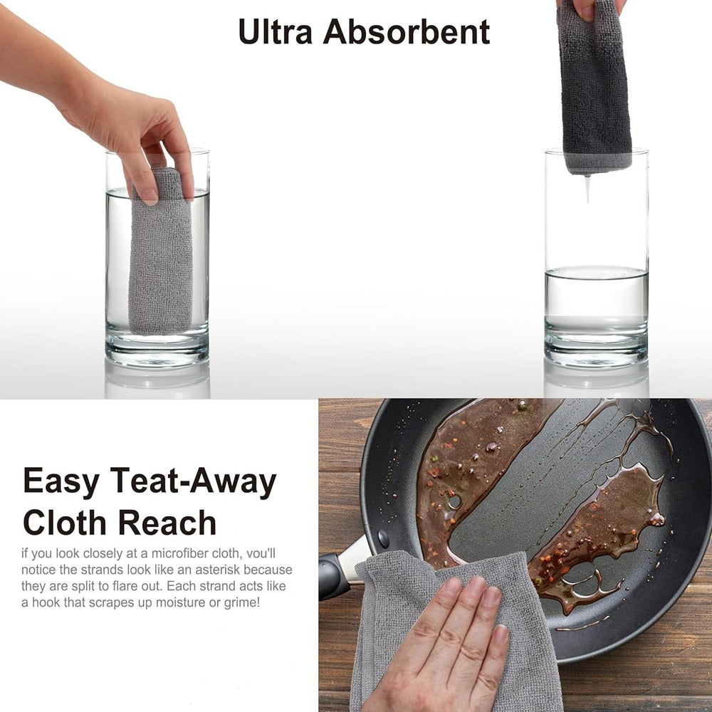 مناشف مايكروفايبر قابلة للتمزيق - مناشف تنظيف قابلة لإعادة الاستخدام والغسل، 30×30 سم، فائقة الامتصاص وخالية من الوبر، لفة من 30 قطعة رمادية