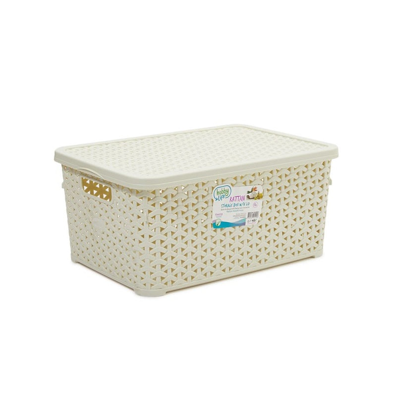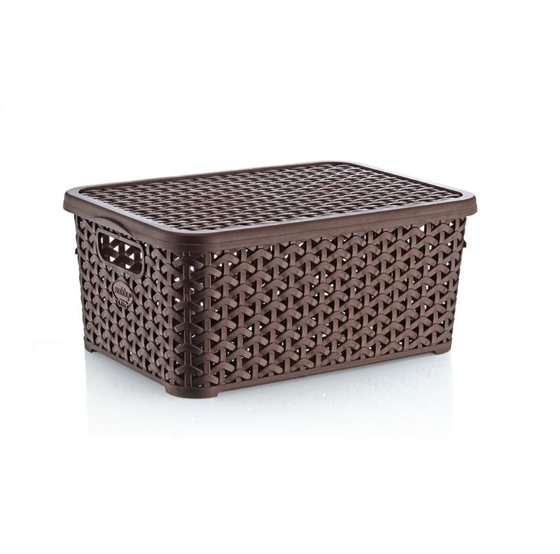 صندوق تخزين من الروطان مع غطاء سعة 10 لتر