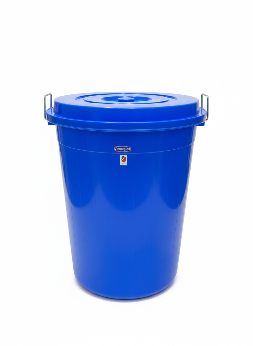 طبلة بلاستيكية مستديرة مع غطاء 100 لتر