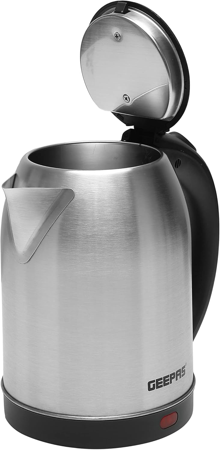 غلاية كهربائية من الفولاذ المقاوم للصدأ من جيباس، مزودة بخاصية الإيقاف التلقائي والحماية من الغليان الجاف، سعة 1.8 لتر، قدرة 1800 واط، موديل GK5466، لون فضي/أسود