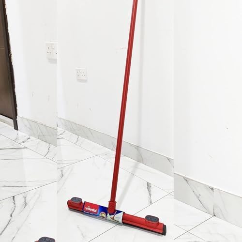 ممسحة أرضيات فيليدا سهلة التركيب 42 سم مع عصا، فتحة لتثبيت القماش، كفاءة عالية في مسح الماء، رغوة، 42 × 4 × 136 سم - أحمر