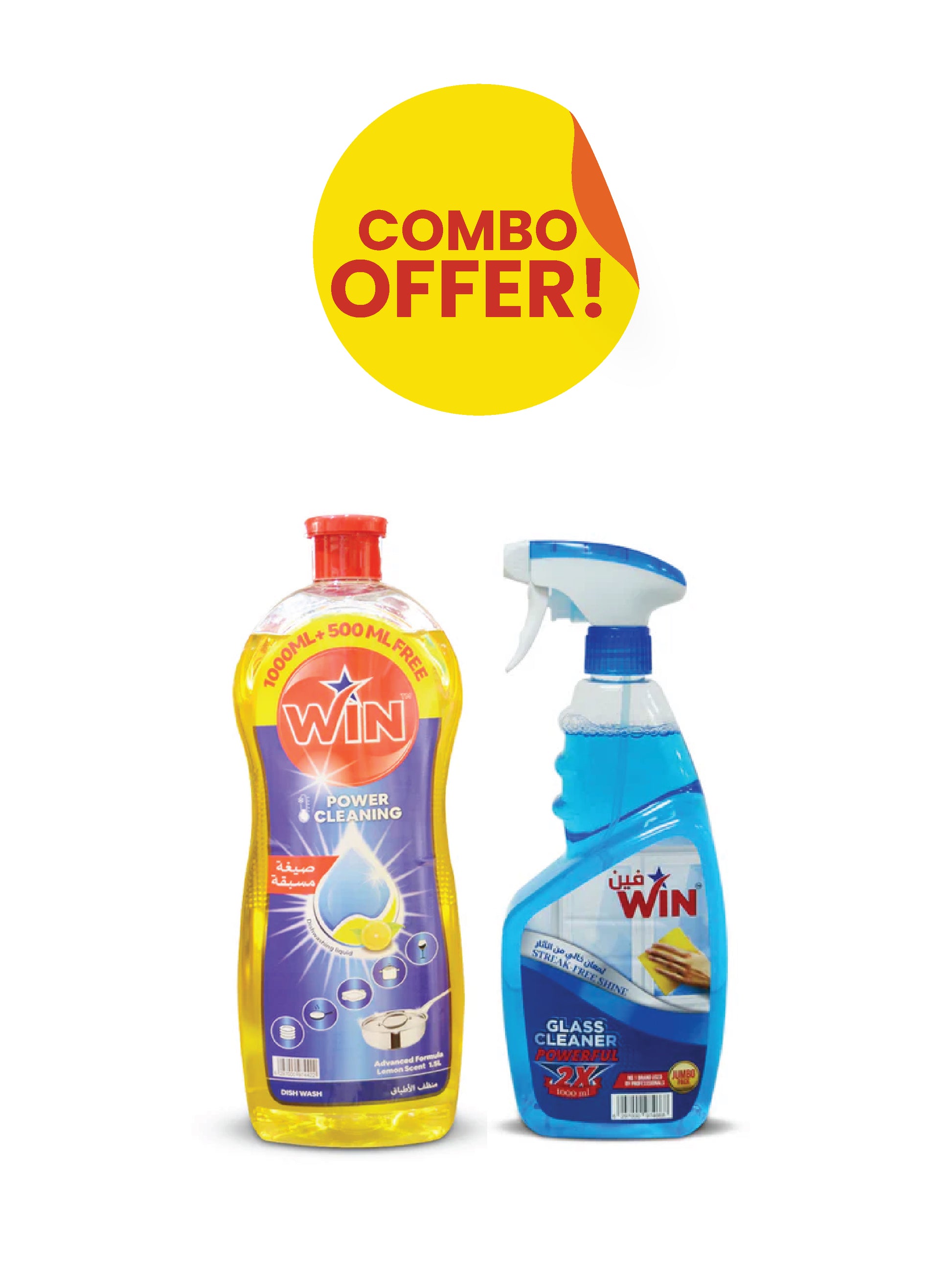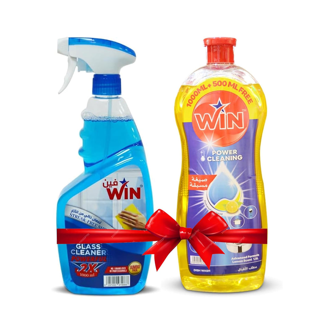 مجموعة منظف الأطباق بالليمون من وين، سعة 1.5 لتر + منظف الزجاج من وين، سعة 1 لتر