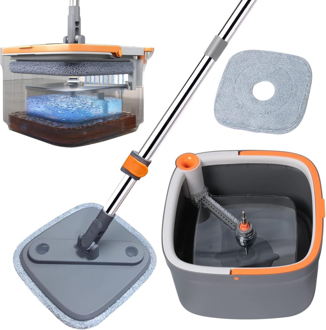 Cleany Genie Ultra Square Spin Mop and Bucket Set, 5.8L Capacity, Self-Wringing 360° Rotating Head,...