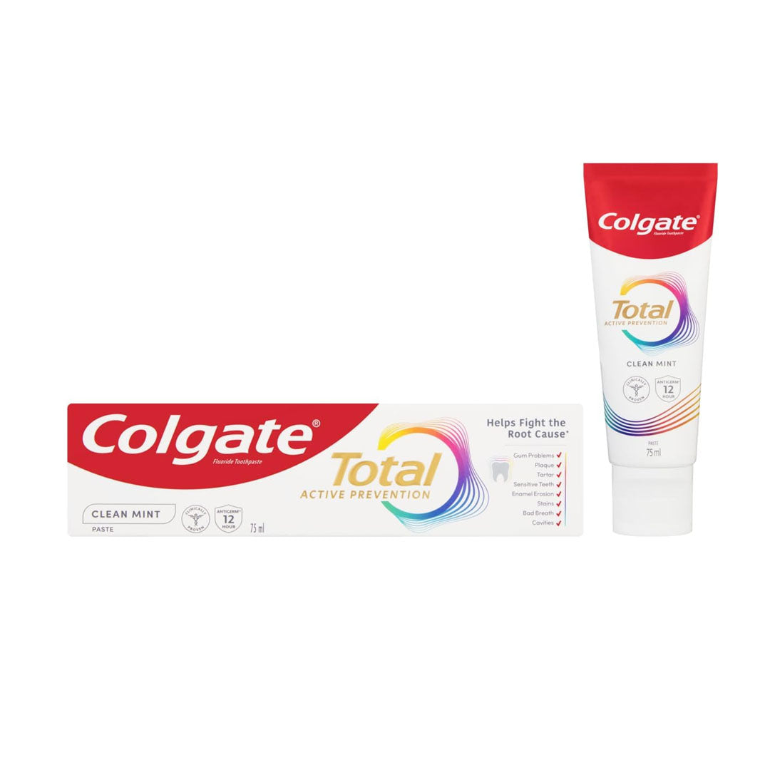 Colgate Toothpaste Total Active Protection, Fresh Mint Toothpaste 75 ml - 12 hours of antibacterial...