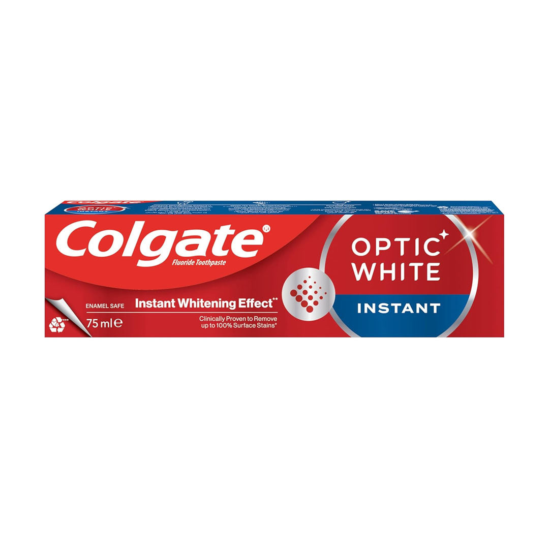 Colgate Optic White Instant Whitening Toothpaste - Fluoride Formula, Enamel Safe for Daily Use 75ml...
